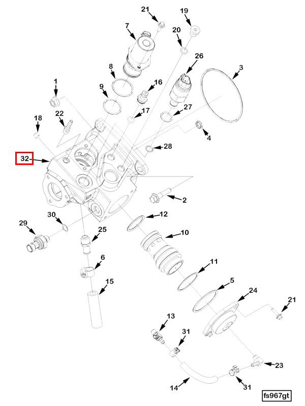 The Fuel Control Housing encapsulates the Fuel Pressure Regulator (FPR), which is responsible for maintaining a consistent fuel pressure within the fuel rail. This is important for the precise delivery of fuel to the engine’s combustion chambers. The housing provides a secure environment for the FPR, protecting it from external contaminants and ensuring its accurate operation 1.