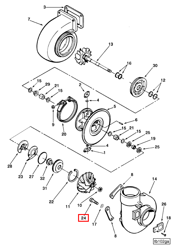 In the Center Housing Rotor Assembly, this screw plays a part in securing the rotor within the housing, which is essential for the balanced rotation required for efficient turbocharging.